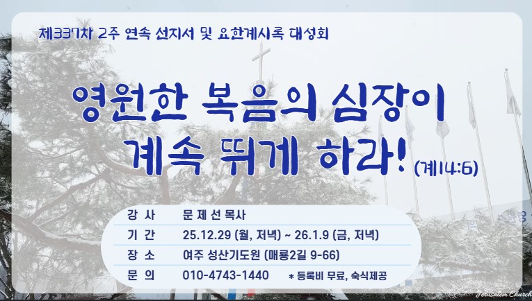 동영상 설교를 보시고 감동이나 격동 받으신 분은 영원한 복음에 힘을 실어 주시면 감사하겠습니다.