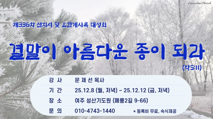 제336차 성산기도원 선지서와 요한계시록 대성회