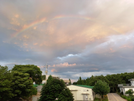 성산에서 본 무지개와 저녁 노을