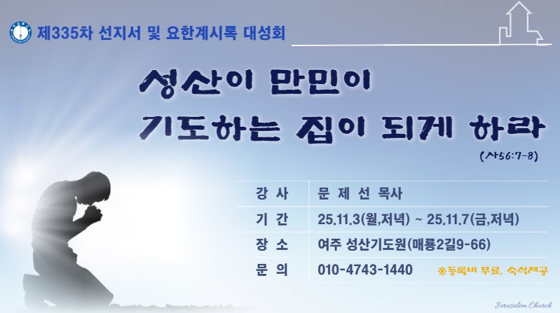 ◈ 주제 : 성산이 만민이 기도하는 집이 되게 하라 (사56:7-8)